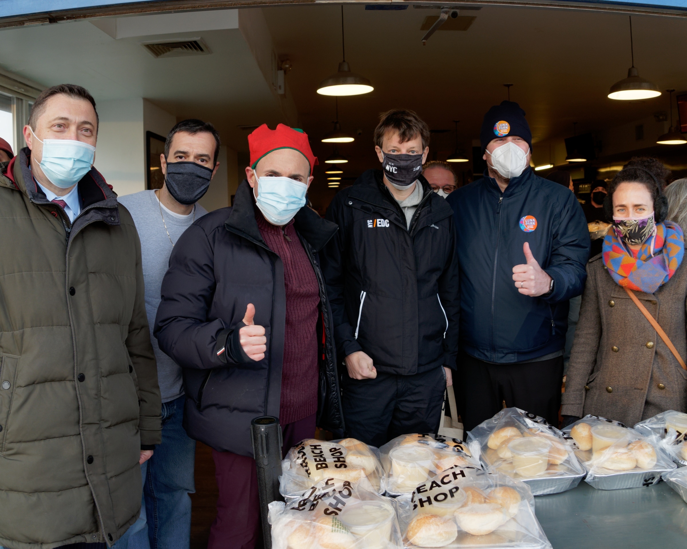 (Left to right) State committee member for the 45th Assembly District Ari Kagan, Jimmy Kokotas of Tom’s Restaurant, Council Member Mark Treyger, James Patchett President & CEO of New York City Economic Development Corporation, Alessandro Zamperla President & CEO of Central Amusement International Inc., Alexandra Silversmith Executive Director of the Alliance for Coney Island.