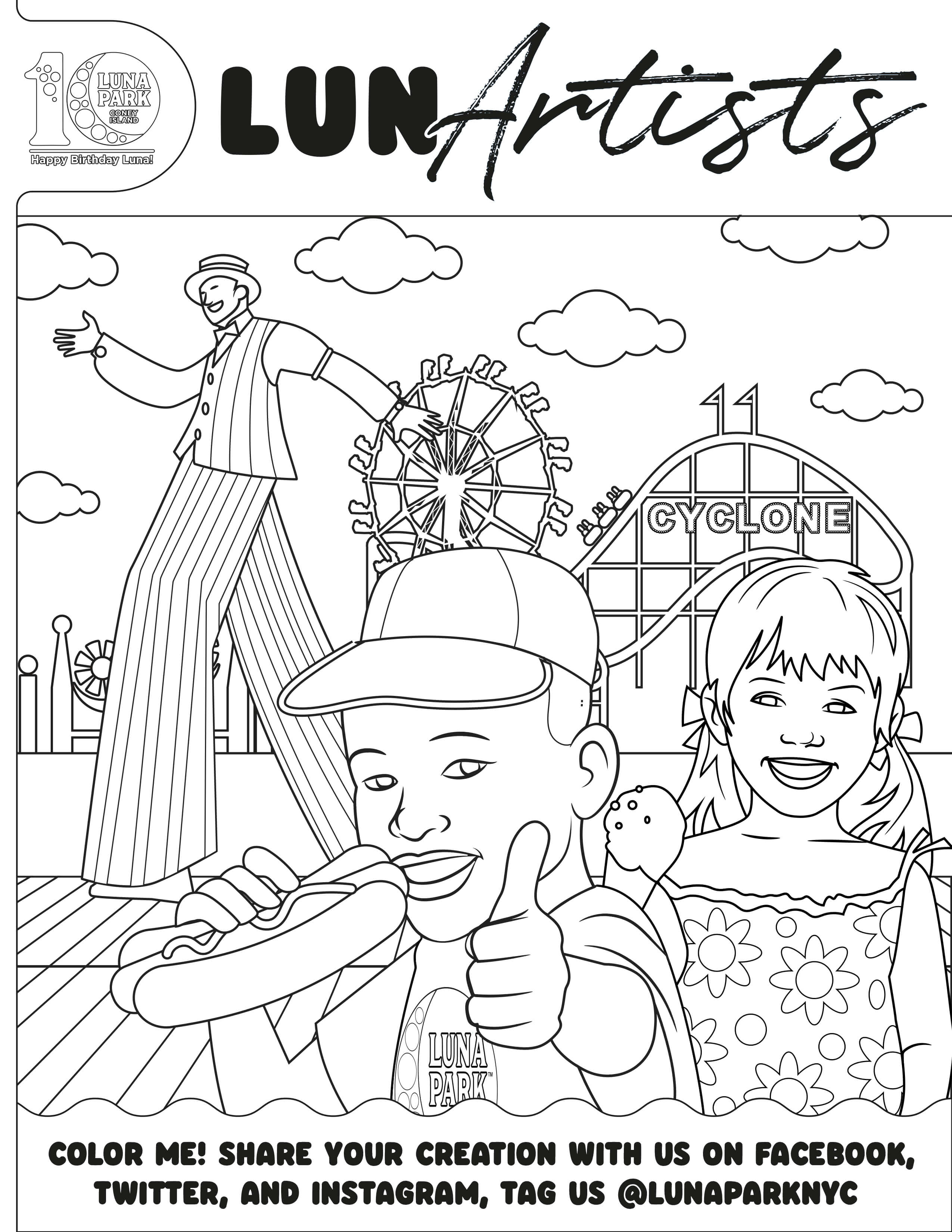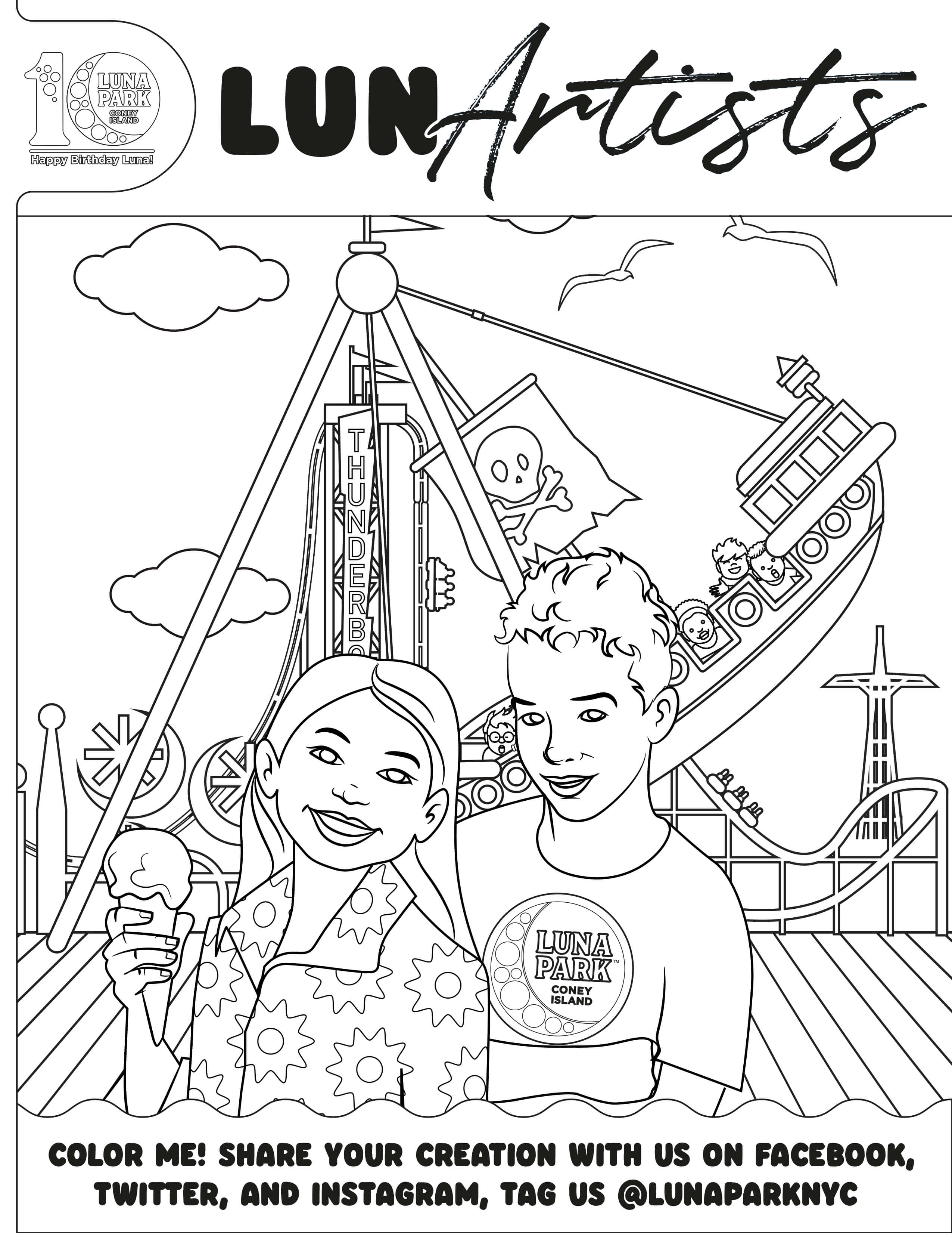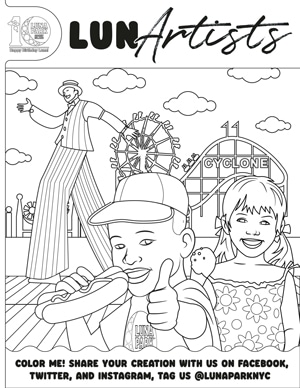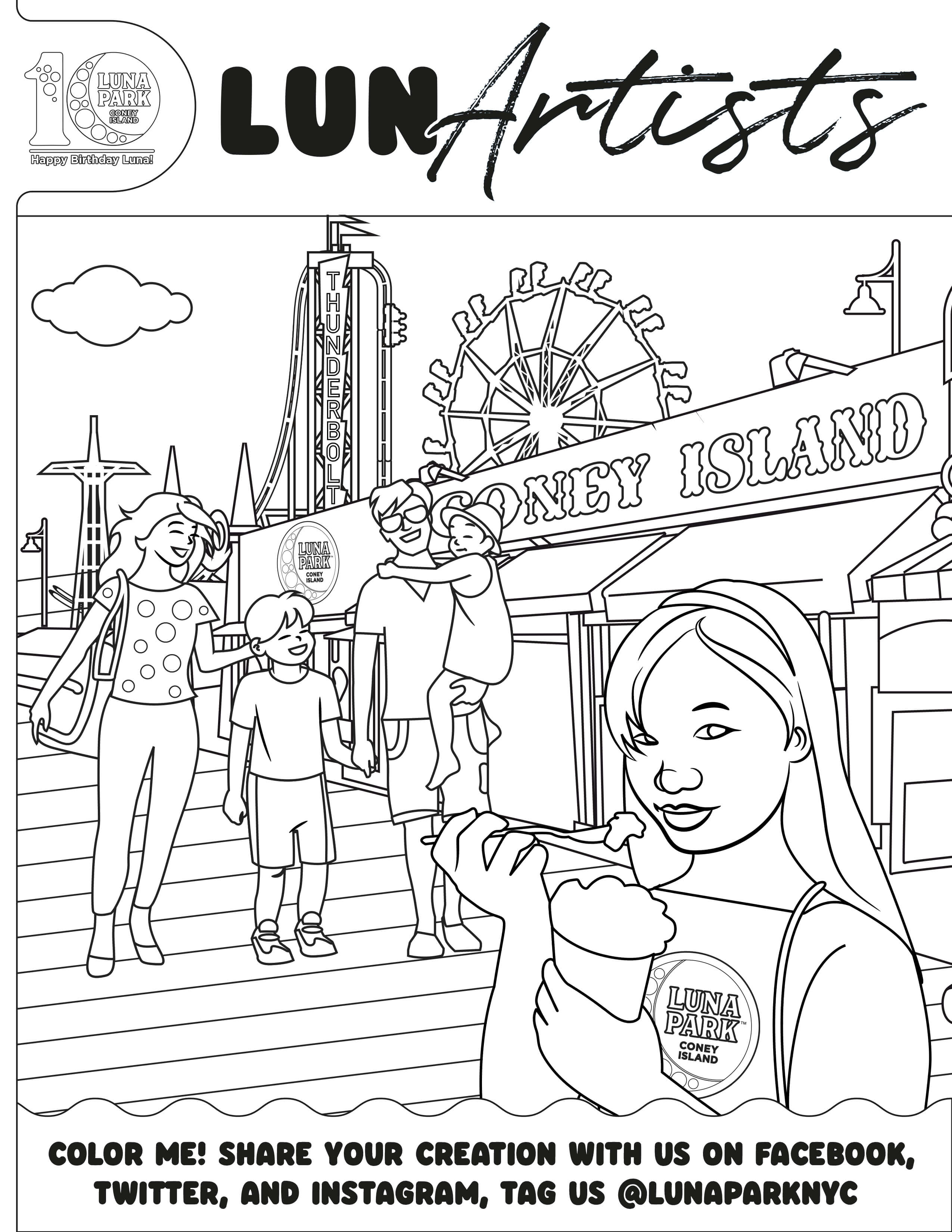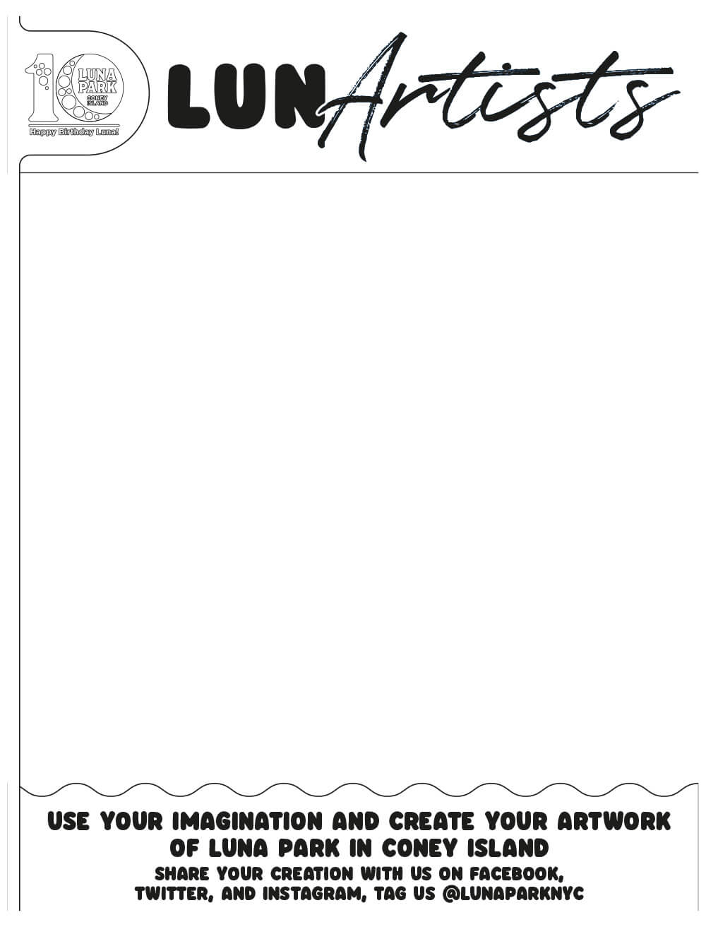 This is a blank canvas for you to design anything you can imagine- your favorite Luna Park memory, a new ride you think we should build, your favorite Luna Park treats or anything that makes you smile when you think of us! All done? When your artwork is finished, take a picture and share your creation with us by tagging us on Facebook, Twitter and Instagram, with @lunaparknyc!