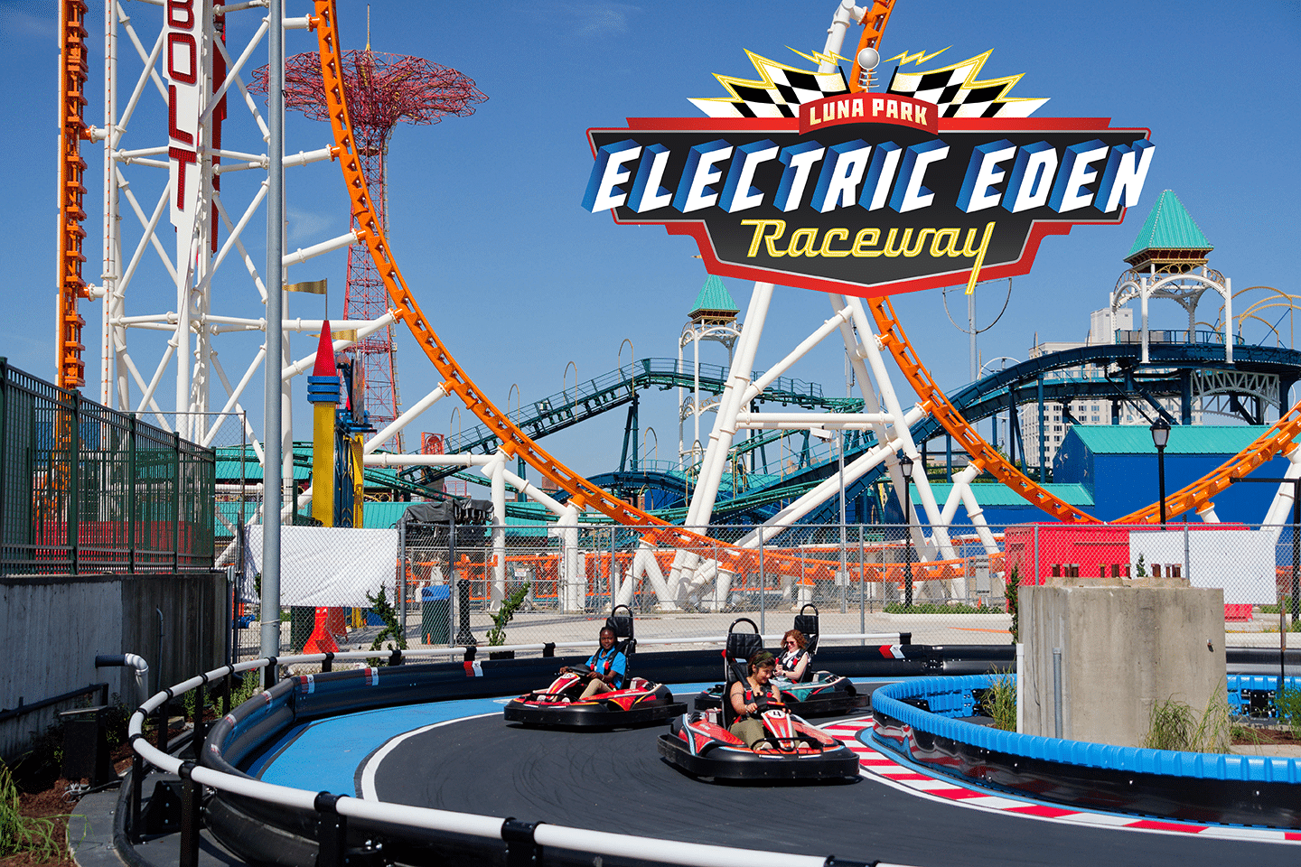 Inspired by the high-energy thrill of motorsport racing, Electric Eden Raceway is New York City’s first sustainably powered go-kart attraction! Featuring state-of-the-art technology and innovative design, Electric Eden Raceway’s Go-Karts offer an adrenaline-fueled adventure like no other. The heart of this experience lies in its cutting-edge operating system, allowing riders to tailor their speed settings to either family-friendly cruising or competitive racing, all at the touch of a button. Spanning a track of 900 feet per lap, drivers can expect a journey filled with twists, turns, and strategically placed obstacles. From “speed bumps” to simulated “mud,” every element is designed to challenge and excite participants, creating an immersive and engaging experience from start to finish.